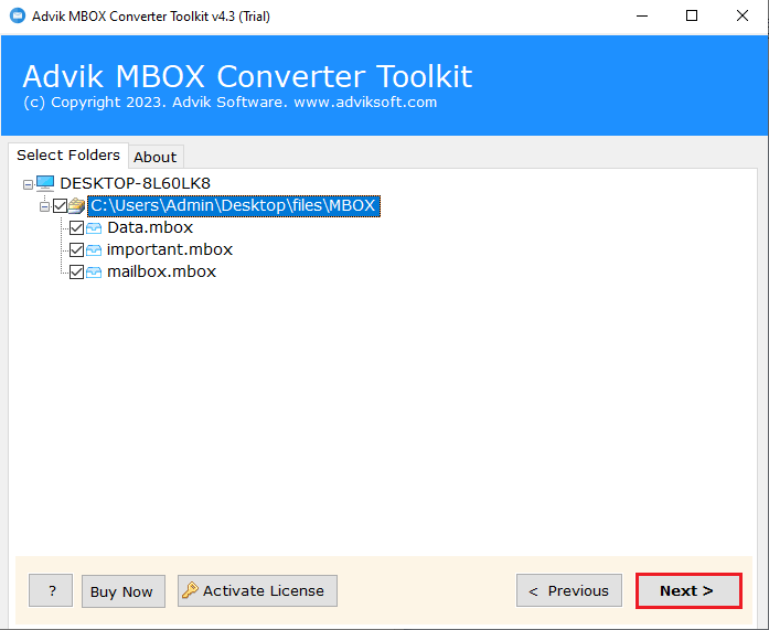 Étape 3 : Sélectionnez le fichier MBOX souhaité que vous souhaitez convertir